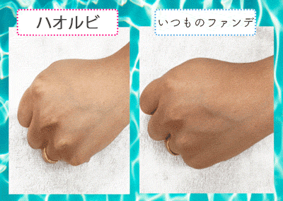 そしてこのファンデの一番すごいところは自分のお肌にのせた瞬間にお肌の色に変わるところ…